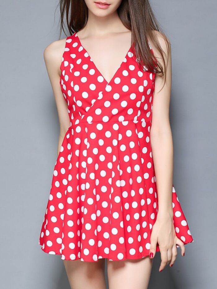 Sweet Polka Dot Open Back Summer Dress For Women
